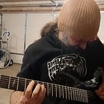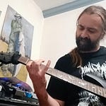 I made the backing track by adding reverb and delay mooneffects to layered drum samples, accompanied by a simple synth part on my Korg volca fm2. The guitars are taking a rest for a minute :)
